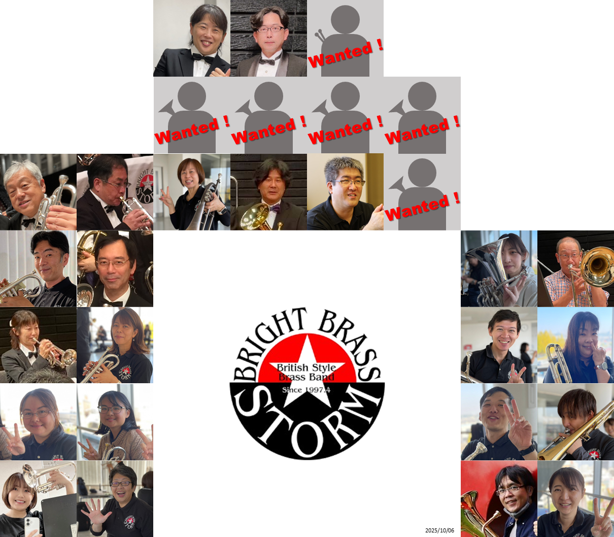 - 充足しているパートについてもバランスが崩れない範囲で標準編成以上の人数で在席できる可能性があります。興味のある方はまずはメールで「bright.brass.storm@gmail.com」までお問い合わせください。